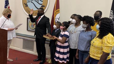 Union, NJ – A swearing-in ceremony took place Thursday at Town Hall for six new police officers to join the Union police department ranks. New to the force, and beginning the John H. Stamler Police Academy tomorrow, are:
